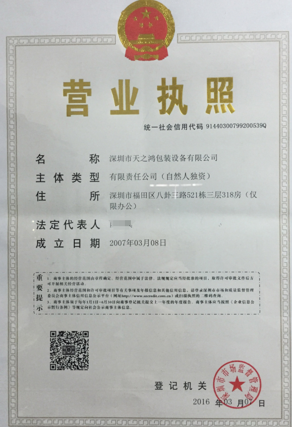 【案例名稱】:深圳市包裝有限公司/變更